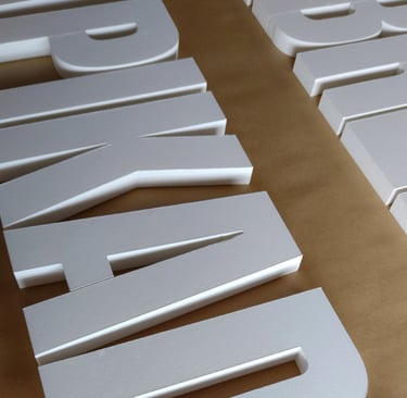 Las letras de corte en polifan tienen un acabado liso y uniforme brindando carteles de alta calidad a muy bajo costo.