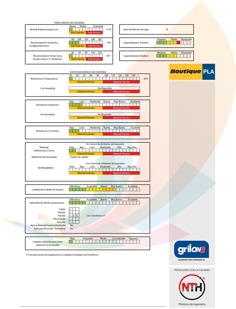Otras características a tener en cuenta son su aporte a una impresión con destacada rigidez y superficie brillante, como así también su compatibilidad con todo tipo de impresoras 3D del tipo FDM.