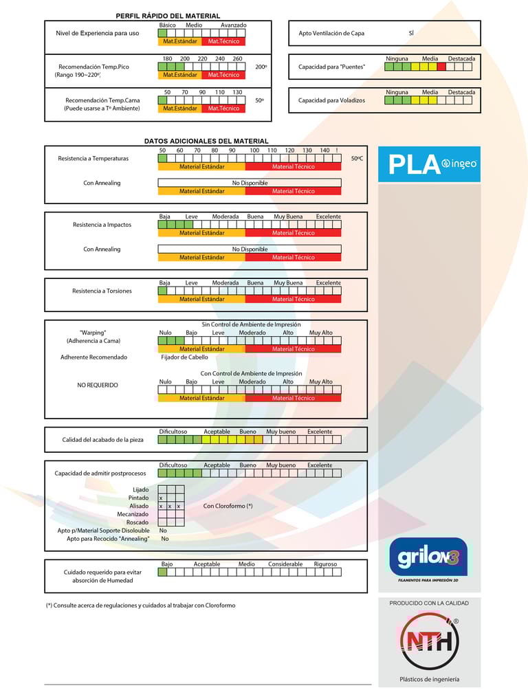 Otras características a tener en cuenta son su aporte a una impresión con destacada rigidez y superficie brillante, como así también su compatibilidad con todo tipo de impresoras 3D del tipo FDM.